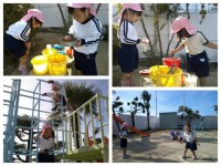 幼稚園に戻ってからは、戸外でいっぱい遊んだ後に、かけっこをしました。「よ~いどん!」の合図を聞いて元気いっぱい走っていましたよ。戸外で一人一人の名前を呼ぶと、元気いっぱい手を挙げて「は~い!」と返事をする子どもたちでした。