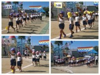 地震が収まったので,園庭に避難しましたが,倒壊する恐れがあるので隣の白鷺小学校へ2次避難しました。