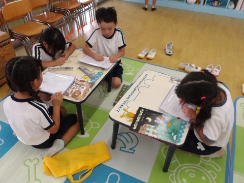 絵本カードに今日の日付や借りた絵本の題名を書くことにも、随分と慣れてきました。