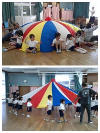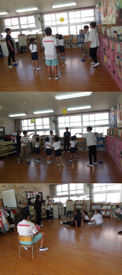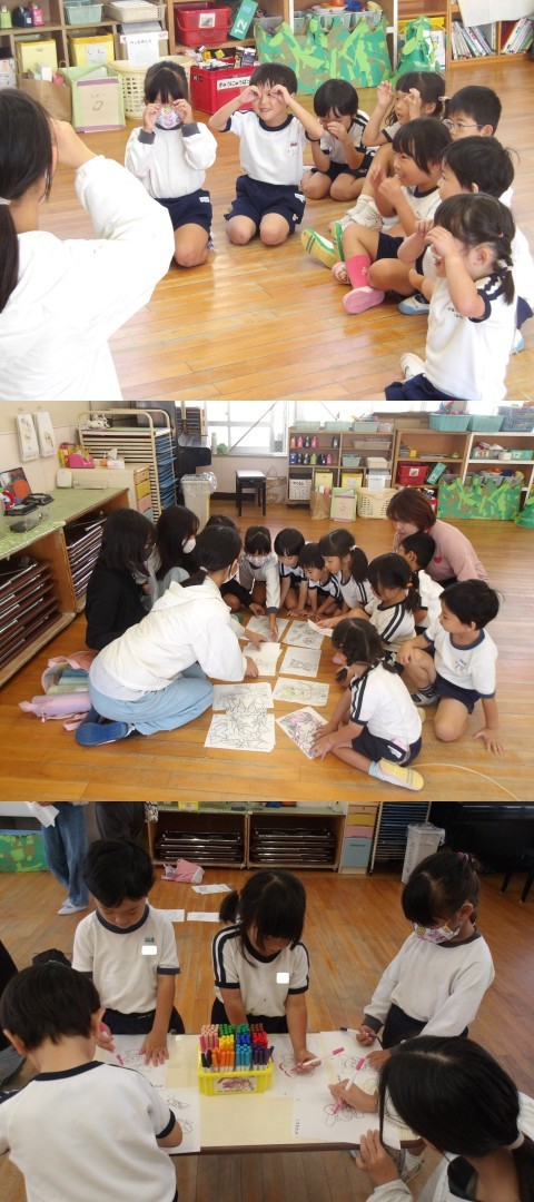 昨日に引き続き、今日も白鷺小学校6年生との交流がありました。昨日の交流がとっても楽しくて今日はまた違うクラスの6年生ですが、来てくれるのを楽しみに待っていました。今日も6年生は幼稚園の子ども達に優しくかかわり、臨機応変に対応しながら楽しませてくれました。