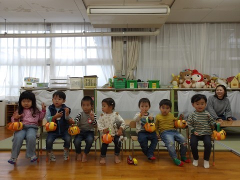 こりす組はハロウィンのかぼちゃのバスケットをつくりました。