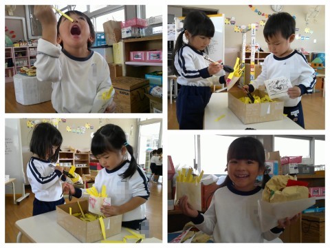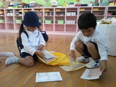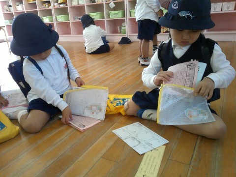 身の回りの始末も自分でできることが増えてきたので、今日は初めて手紙袋に配布物を入れてみました。今日は、配布物がたくさんありましたが自分で入れることができましたよ。おうちでも、幼稚園の準備や降園後の後始末など、自分でできることが増えていくといいですね(*^▽^*)