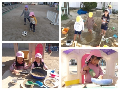 日々,風や日差しがやわらかく心地良くなってきています。お休みの日もお天気の良い日は戸外で存分に体を動かして遊んでくださいね。