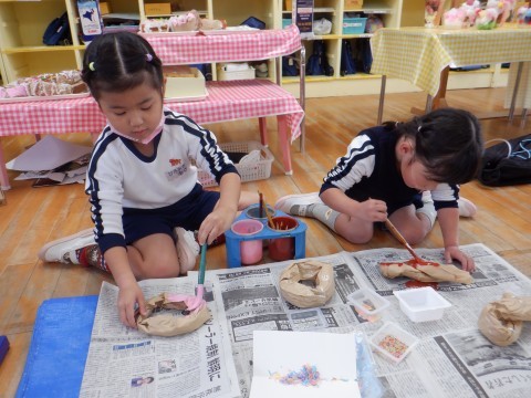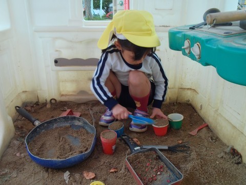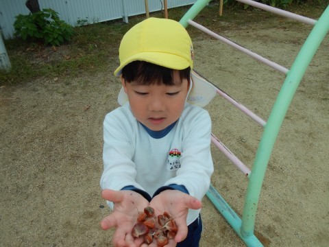 自発活動では、クリの実や柿の種を見つけてとてもうれしそうに見せてくれました。はじめは難しかった一輪車やのぼり棒、鉄棒などを何度も挑戦していると少しずつ「できた!」が聞こえてきました。その調子で遊びを通してすくすくと成長してほしいと願います♪