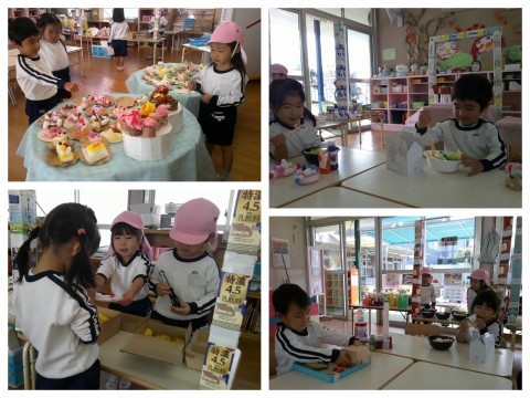 午後からは、すみれ組さんが誘いに来てくれたので、すみれ組さんのお店に遊びに行かせてもらいましたよ。やさしくしてもらって、とてもうれしそうでした。