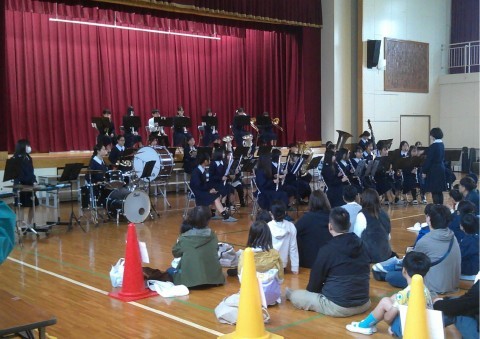 東百舌鳥中学校吹奏楽部による演奏をきいたあとにチャレンジコーナーを回りました。