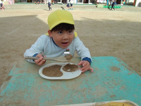 パーティ用の料理を砂で作って準備したり、下駄をはいてお友達と一緒に歩いてみたり…と新しいことに挑戦する様子も見られました。