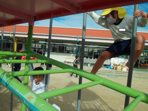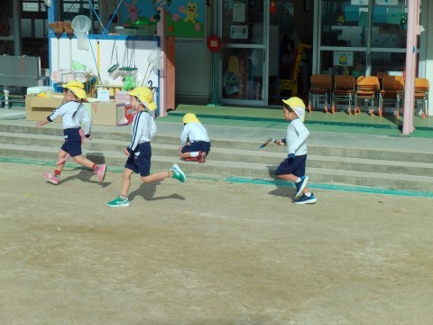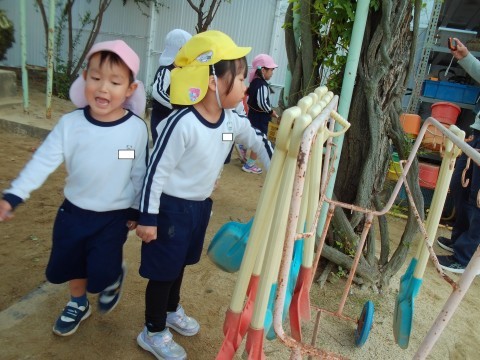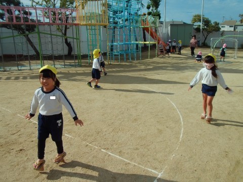 自発活動の様子では、はじめは少し寒そうでしたが、お日様が出てくるとみんな元気いっぱいになって遊びました。