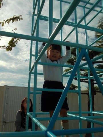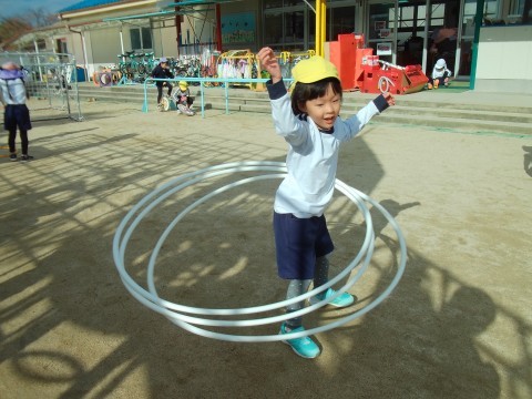 「ここまで登れた!」「フラフープ3本できるよ!」とジャングルジムやフラフープに挑戦して、成功できたときは大喜び!