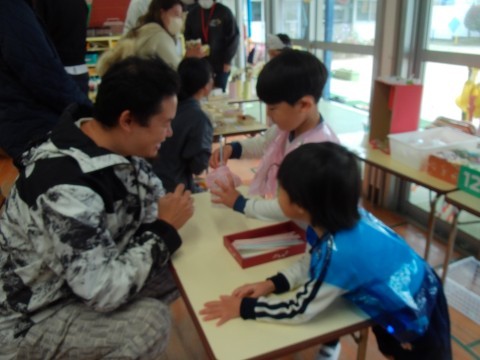 「ここは何のお店ですか?」とお客さんが尋ねると、内容をしっかり伝えることができました。また、お客さんにやり方を教えて一緒に楽しむ様子も見れました。