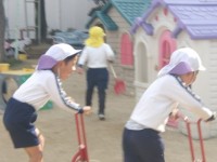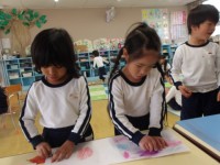 夏休みの間なかよしでお世話をしてもらっていたカブトムシの幼虫をもらいました。みんな興味津々です。手でも触ってみました。土の中にゆっくり潜っていく姿をみて「潜ってる!」との声も。霧吹きでお水を適度にあげると大きくなるそうです。はりきって「お世話する!」と言っていました。