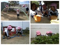 カブトムシの幼虫のお世話をしました。これまでは、霧吹きで土を湿らせるので精一杯でしたが、最近砂場でふるいを使う楽しさを感じる姿があったので、投げかけてみると、みんなとてもじょうずに使っていましたよ。ふるいに残るウンチの量にびっくり!みんな一生懸命きれいにしてくれました。今度の夏に元気なカブトムシに変身できるようにみんなでお世話、がんばろうね!