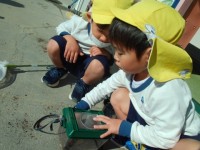 今日もお水をたくさんあげて芽が出ることを楽しみにしていました。また、見つけた柿の種を新しい容器に入れて育てるお友達もいました。