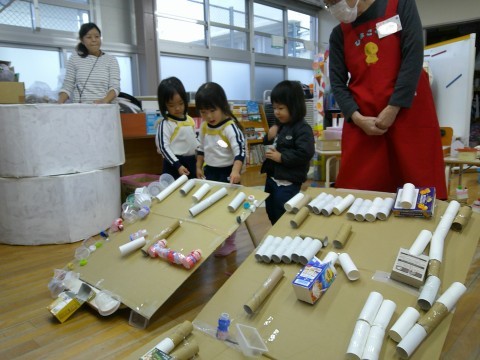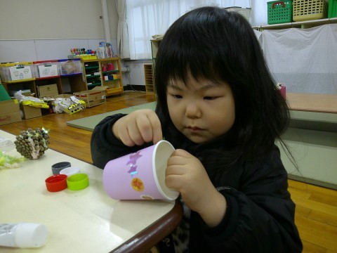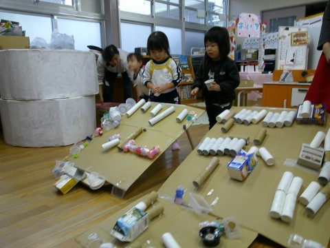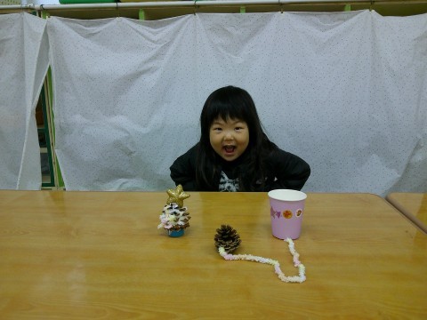 こりす組では,木の実でクリスマスツリーやけん玉をつくって遊びました。