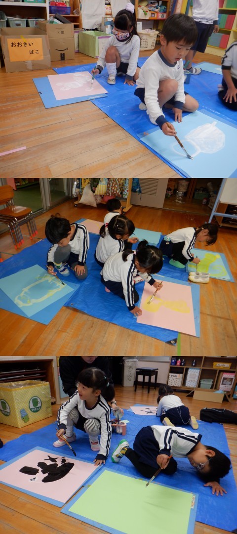 自発活動の後は、先週行った天王寺動物園の動物たちを思い出し、動物の表現をして遊んだり動物の絵を描いたりしました。お気に入りの動物は何だったかな?「茶色の絵の具がいる!」「体はこうかな~?」と考えながらのびのびと描いていました。明日続きを描くのが楽しみだね!