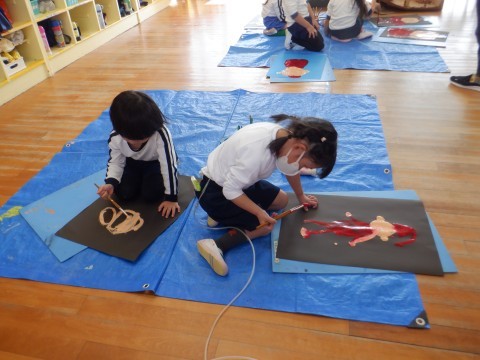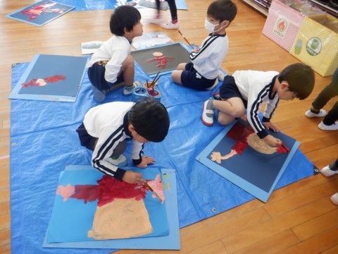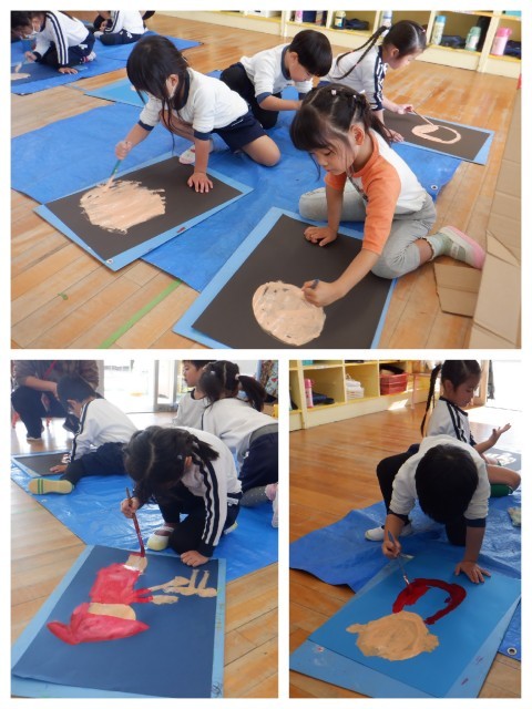 クリスマスで喜んでいるサンタさんや、ソリに乗っているサンタさんなど思い思いのサンタさんを描いていました。「明日はトナカイも描こうっと♪」「白いおひげとか洋服のボタンも描くよ!」と続きを楽しみにしています。どんなサンタさんが出来上がるのかな?