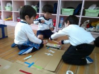 もちをついた後は、餅を丸めてみました。「あったかい~」「いいにおいだよ」「きもちいいなあ」もちを触ると、思わずいろいろなことをつぶやく姿が見られました。みんな、じょうずに丸めて、大切そうに袋に入れていましたよ。「きな粉につけて食べたいな」「焼いて食べるねん」「あんこがいいな」などと、どうやって食べるかも考えていたもも組さん。今日は、おうちに帰っておうちの人と一緒においしく食べてくださいね♪