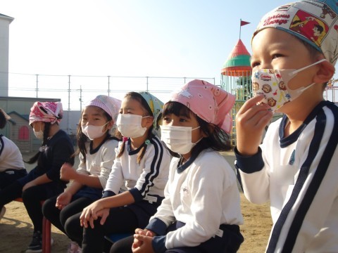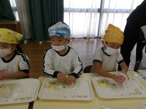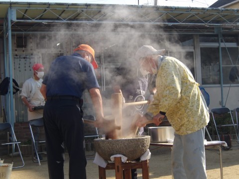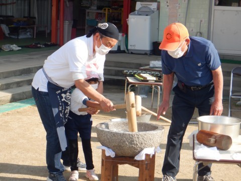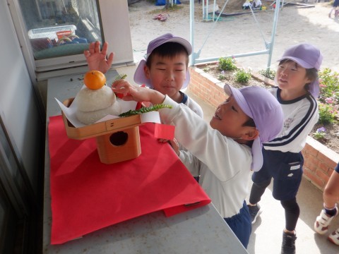 今日はとても良い天気の中,お餅つきをしました。つきたてのお餅の香りに子ども達もとても嬉しそう。重い杵を持ち「ぺったんこ,ぺったんこ!」お餅をついた後は,家族で食べるお餅を丸めました。「醤油をつけて食べる」「きなこをつけて食べる」「ぜんざいにする」「味噌汁にいれる」などなど,笑顔いっぱいで好きな食べ方を教えてくれました。
