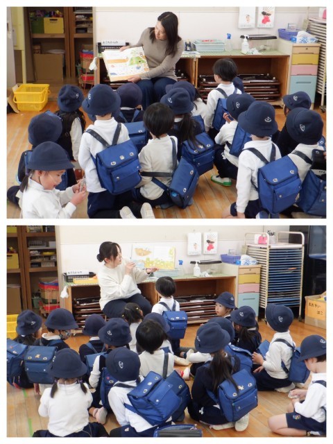 降園前にななたまさんの絵本の読み聞かせがありました。昨日お楽しみ会もあったのでクリスマスのお話を選んで読んでくださる保護者の方が多かったです。今日はお父さんも読み聞かせをしてくれました。子ども達が絵本の世界に入り込み、想像力を膨らませてお話を楽しむ機会になり、とてもいい経験になっています。いつもありがとうございます。