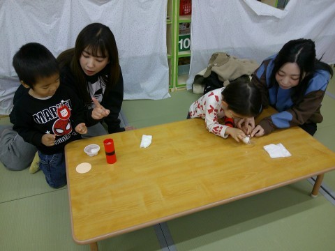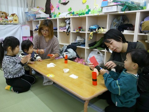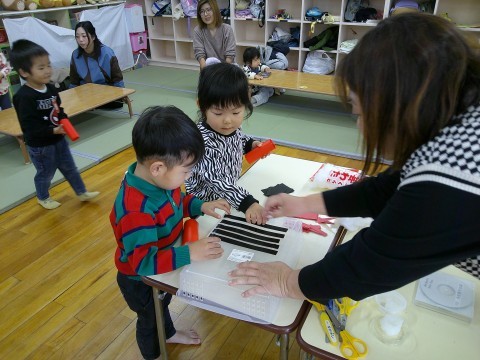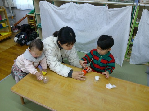 来年度,幼稚園にくるお友達が制作遊びをする時間です。