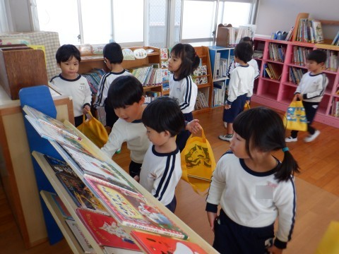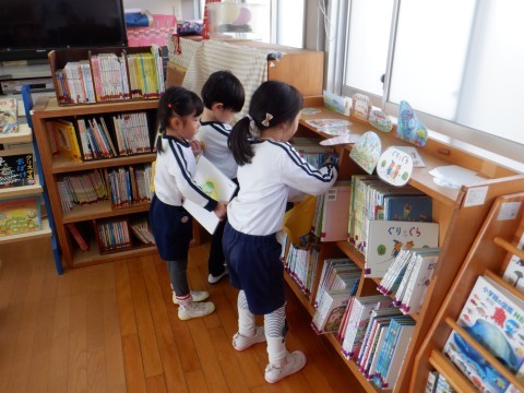 今日は2学期最後の本の貸し出しです。2冊本を借りたあとに本の整理をして、自分の借りた本の色を見て丁寧に片づけることができました。