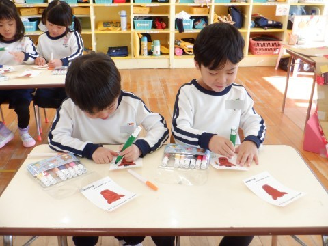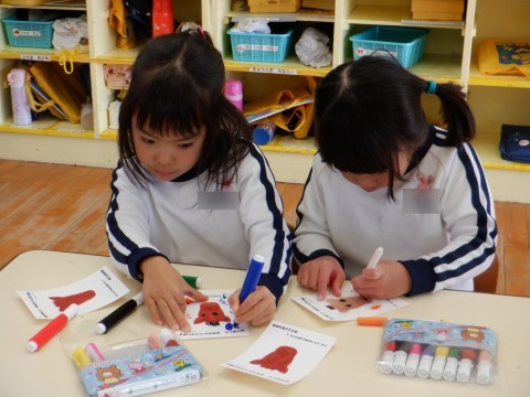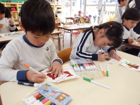 19日 年賀状に絵をかいたよ(4歳児)