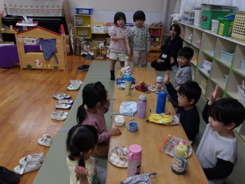 今週は5歳児の利用のお友達がいなかった日があり、お弁当やおやつの時の「いただきます」の声掛けを4歳児がしてくれました。