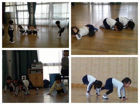 遊戯室では、動物になってごっこ遊びを楽しんでいます。途中で雷が鳴ったり雨が降ったりして遊ぶことを楽しむ姿もあるので、かみなりさまのダンスも踊ってみましたよ♪みんなノリノリで踊っています(*^▽^*)