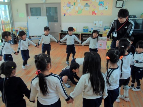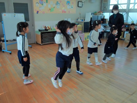 表現遊びでは、いつも出てくる生き物がでてきたり、昨日でてきた生き物とは違う「ヘラクレスオオカブト」や「おおかみ」がでてきたり…それぞれがやってみたい生き物になりきって楽しみました。