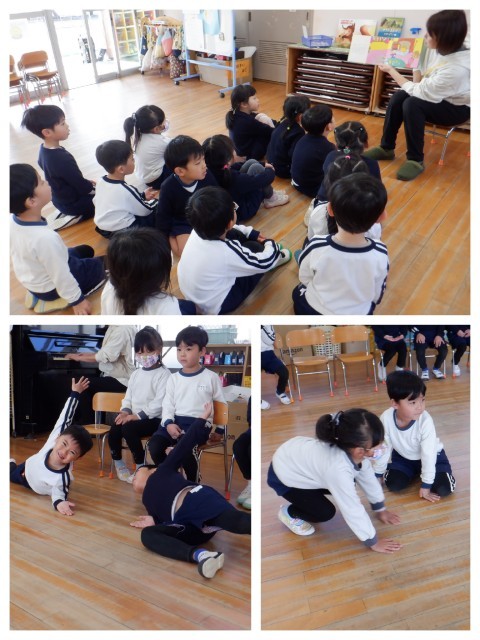 昨日描いた『ゆきだるま』の続きを描きました。かわいい顔を描いて、マフラーや帽子もおしゃれにしていましたよ。寒いからと洋服を着せてあげる子もいて、温かくて嬉しそうなゆきだるまがたくさんできました。