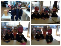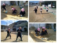 保育室では、鬼のお面の続きをつくりました。毛糸とボンドを使いましたよ。はさみで切ったり、ボンドで貼ったりすることを楽しみながら、愛らしい鬼さんがたくさん!!完成すると早速かぶる子どもたち。とてもうれしくて、かぶったまま粘土遊びをする子どもたちもいましたよ。幼稚園に鬼さんがやってきたら、みんなで鬼のお面をかぶって退治しようね!