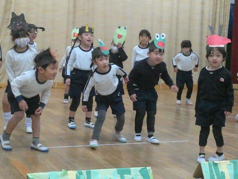 今日は劇遊びの予行日でした。劇で頑張っているところを園長先生に見てもらいました!ちょっぴり緊張したかもしれませんが、大きく表現して最後まで通すことができました。歌も元気に歌えるところと難しいところがありましたので、どんどん練習して覚えていけたらいいなと感じます。