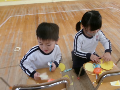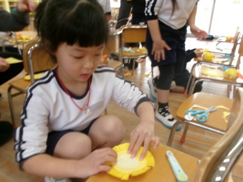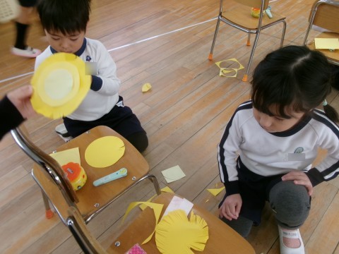 劇遊びの練習が終わった後は、みんなでたんぽぽ公園のたんぽぽを作りました。花びらが細かいたんぽぽや太めのたんぽぽとそれぞれ違ったたんぽぽが出来上がりました!