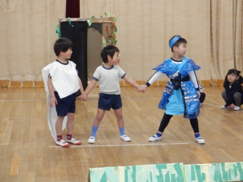 劇遊び,昨日よりも自信をもって大きな声で頑張っていましたよ。お話の言葉もどんどんでてきていました。
