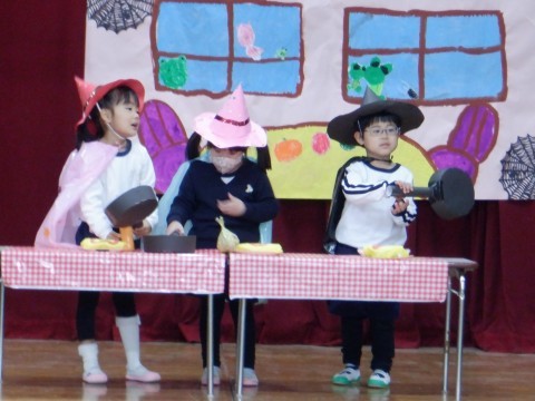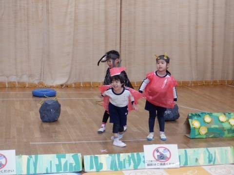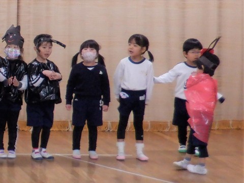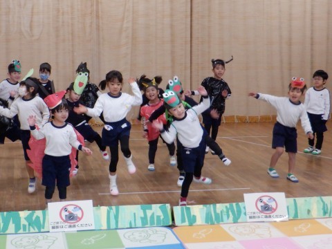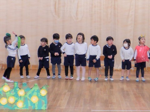 また、明日は劇遊び本番なので今日はいつも以上にはりきって演じていました。お歌も大きな声で歌えるようになりましたが、本番は緊張で声が小さくなってしまうかもしれません。劇遊びはお友達と力を合わせて最後まで楽しんでほしいと思っています。保護者の皆さんも温かく見守っていただけると幸いです。よろしくお願い致します。