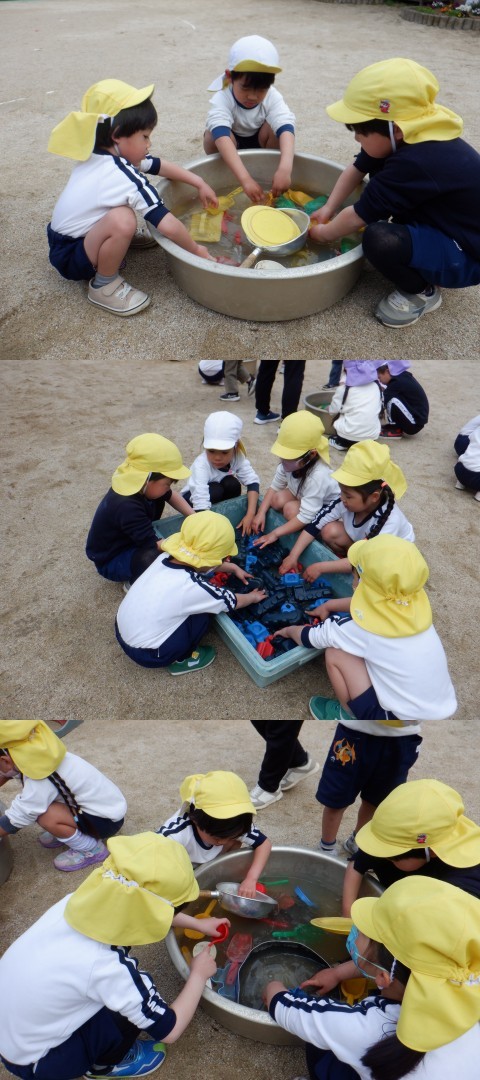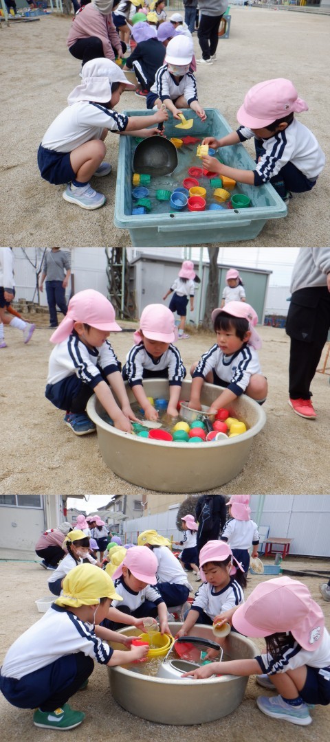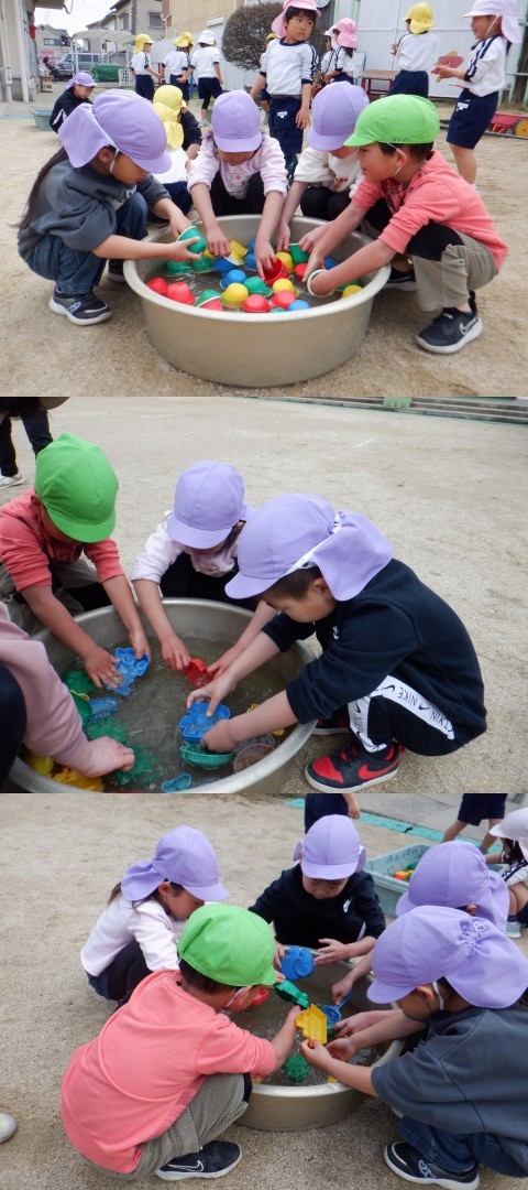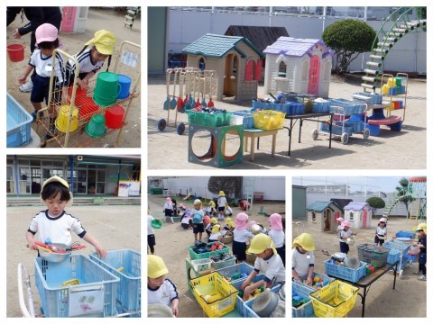 今日はみんなで大掃除をしました。自発活動の後、砂場のおもちゃをきれいに洗って仕分けをしました。毎学期末に大掃除をしているので、みんなテキパキと進んで掃除を進めてくれました。19日に修了式を終えた年長さんも、預かり保育で一緒に大掃除をしてくれました。