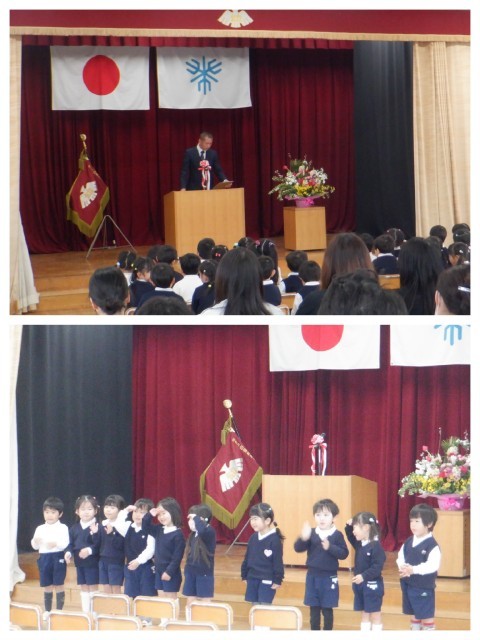3学期の終業式を行いました。1年前と比べるとみんな大きく、堂々としてみえました!お家の人の前で、歌もしっかりと歌うことができましたよ♪みんな大きくなったね。
