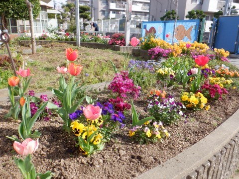 幼稚園の花壇のお花もきれいに咲いています。いよいよ明日から新学期が始まります!