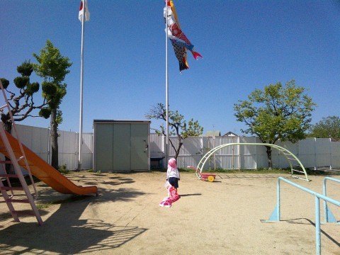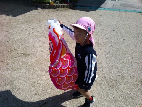 今日はポカポカお天気だったので,たくさんお外で遊びました。外に出ると「こいのぼりがある!」と大きなこいのぼりを見て喜ぶ姿がありました。小さなこいのぼりを持って走ってみたり,大きなこいのぼりと見比べたりする姿がありましたよ🎏