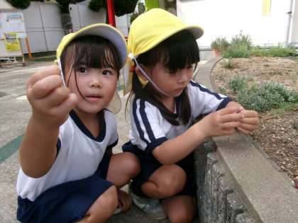 子どもたちは、元気いっぱい虫探しや水鉄砲、運動遊びを楽しんでいました。遊んだ後は重たいものも「自分たちで片づける!」と進んでお片付けしていましたよ。お家でもいろいろなことを任せてみたら張り切ってお手伝いしてくれそうですね!