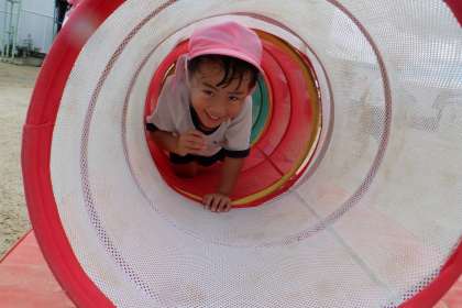 「トンネルがあるよ!」と楽しそうに遊んでいました。