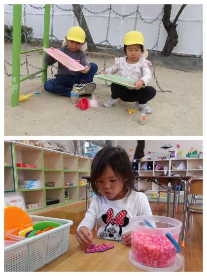 なかよしルームでじっくりゆったり遊ぶことができる午前保育の日。部屋の中での遊びでも、園庭での遊びでも好きなことにじっくりと集中して遊んでいる姿に子どもたちの成長を感じました。