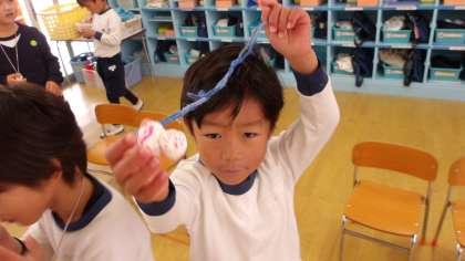 今日はたんぽぽ組さんともも組さんの、「つくってあそぼう」に参加させてもらいました。「かわいいお店がたくさん☆」と大喜びの子供達。楽しくって何度も並んでは、おいしいごはんをいただいたり、色々なお医者さんに診てもらいにいっていったりしていました。大好きな友達のしているお店だから、さらにうれしい様子。たんぽぽ組さんからは、おみやげもいただいて、大喜びの子供達でした。