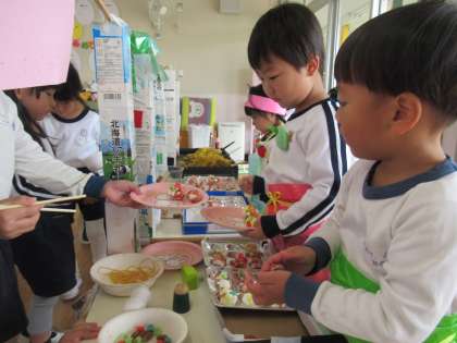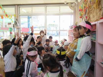 14日 今日の様子2 もも組(3歳児) 公開日 2023/11/14 更新日 2023/11/14 3歳児 振り返りでは、「たこ焼き、おいしかったよ」 「ケーキもおいしかった」 「ドングリコースター楽しかったよ」など 褒めてもらって嬉しそうなもも組さんでしたよ。 明日はおうちのひとが来てくれます。 とても楽しみにしている子どもたちです。 保育参加よろしくお願いします。
