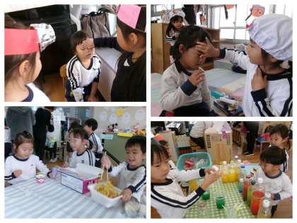 また、もも組さんがお客さんで来てくれた時にはいつもより丁寧に優しく関わる姿が印象的でした。明日はいよいよ保育参加です。子どもたちがなりきって遊んでいる姿をお楽しみに♪