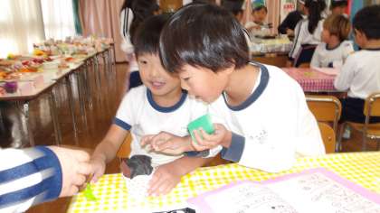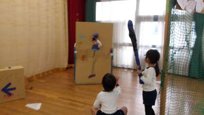 今日はつくってあそぼうの前日 「まだ これがいるわ!」とまだまだ作りたい様子。替わりあって遊んだ時も、レストランでは「注文おねがしまーす!」とウエイターさんに注文していました!明日はいよいよおうちの方が来てくれる日です!子供達は楽しみにしています☆