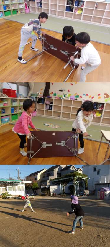 おやつを食べるために机をみんなで出しています。この頃は年少さんもお手伝いを進んでしてくれています。ありがとう!