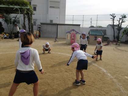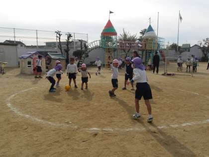 16日 今日の様子4 もも組(3歳児) 公開日 2023/11/16 更新日 2023/11/16 3歳児 中あてをしました。 すみれ組のお兄ちゃんも一緒に、中あてをして遊びました。 もも組さんも、ルールがわかってきて、楽しいようです。 またしようね。