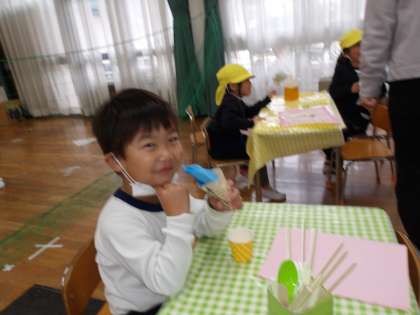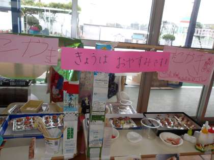 たんぽぽ組のお兄ちゃんが「今日はお休みなったん?」と聞かれると、「月曜日から、またお店しますからきてね」と答えていました。