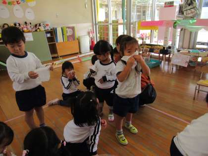 ポケットにティッシュが入っていないお友達はまたお家で一緒に準備してくださいね。